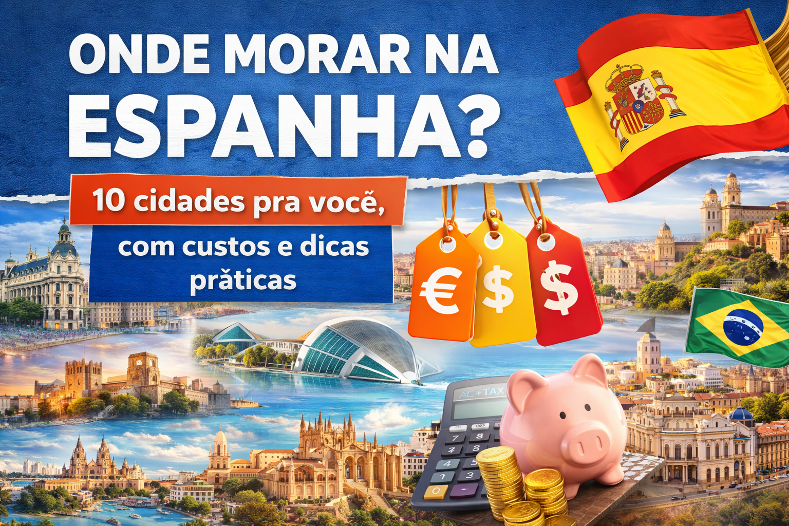 Você está pensando em se mudar para a Espanha? Vou te ajudar a avaliar o que importa: custo, emprego, clima, idioma, qualidade de vida e transporte. Em cidades grandes como Madrid e Barcelona o aluguel de um apartamento de 1 quarto pode ficar entre €900–€1.500/mês; em cidades menores como Granada, Salamanca ou Alicante dá para pagar €400–€700. Transporte, alimentação variam, mas uma média de custo mensal (sem aluguel) é €400–€600.